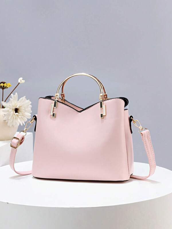 Bolso satchel con bloque de color, bolso bandolera con decoración de borlas de m
